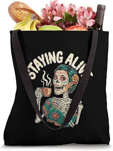 That’s exactly the point where the Catrina Staying Alive Graphic Saying Tote Bag really stands out. At a roomy 16” x 16”, it has that just-right square shape that can hold everything from your gym stuff to whatever you pick up at the weekend market.